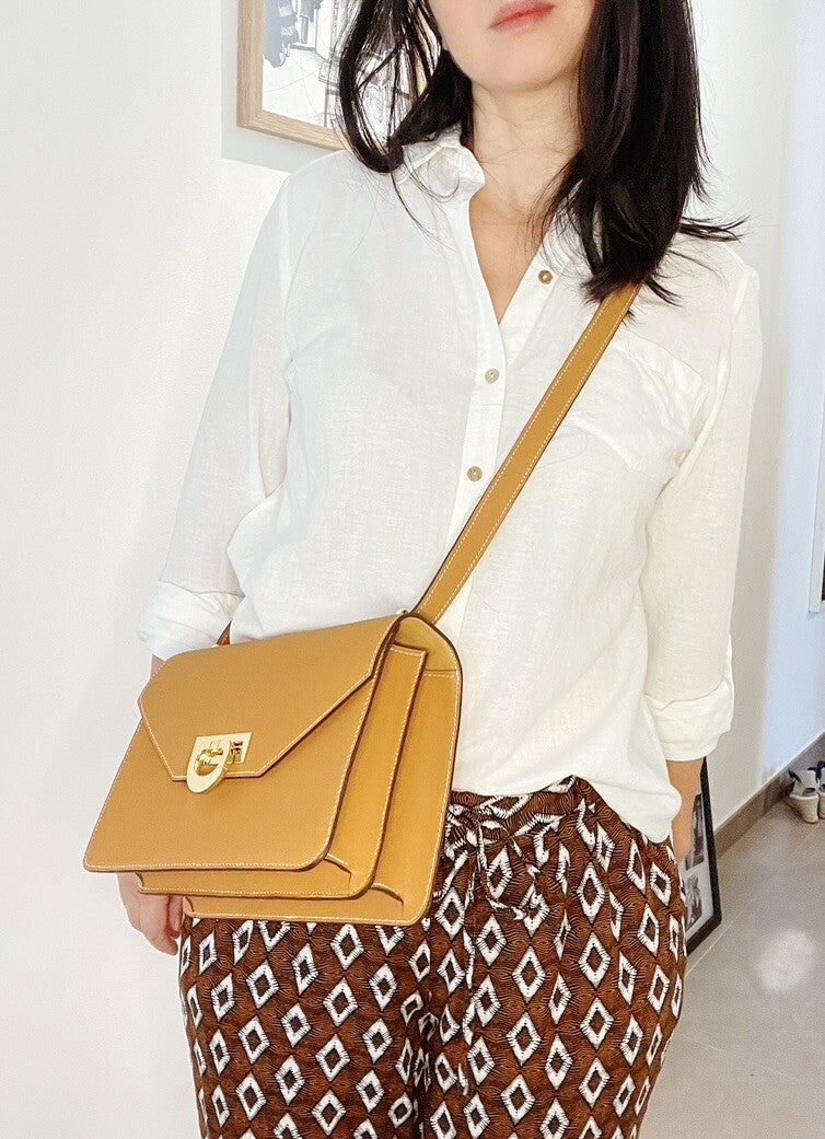 Ce modèle mesure 23 cm de large et peut accueillir un iPad mini.La bandoulière est non détachable.